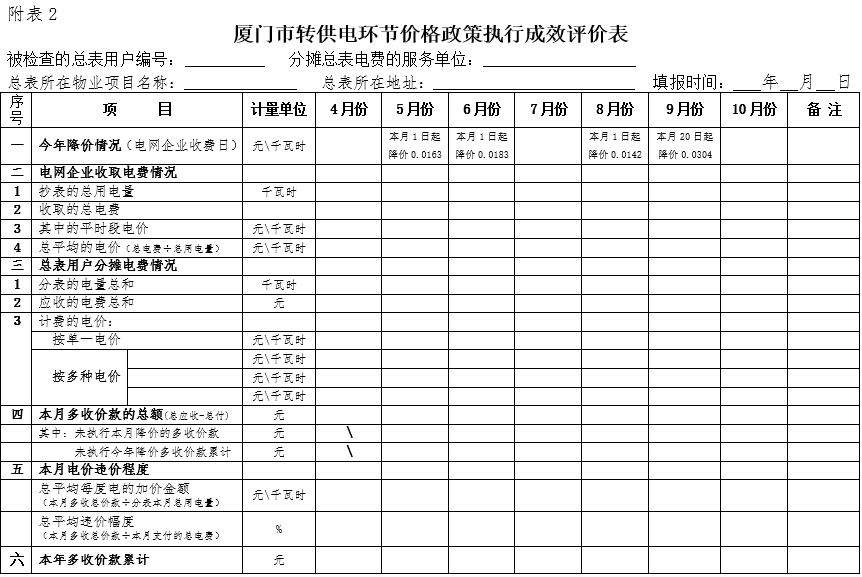 2.廈門市轉供電環(huán)節(jié)價格政策執(zhí)行成效評價表