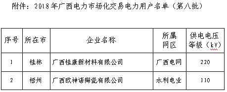 廣西公示擬列入2018年電力市場交易準入名單(第八批)的2家電力用戶