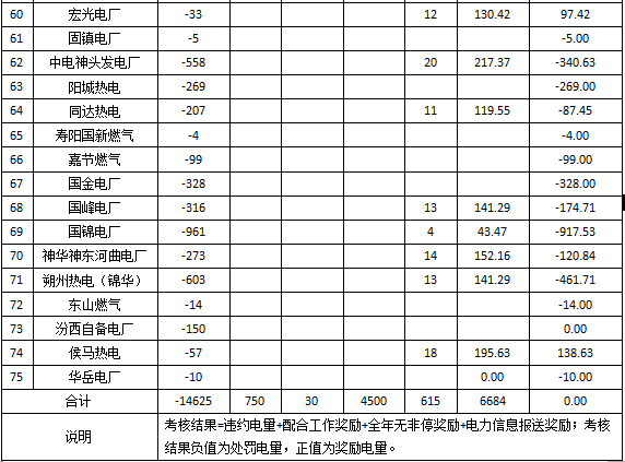 一、鑒于自備電廠與電網(wǎng)無(wú)結(jié)算關(guān)系,對(duì)發(fā)生違約電量的華澤、太鋼、啟元、兆豐四戶自備電廠予以通報(bào)批評(píng),且不做任何獎(jiǎng)勵(lì),違約電量不進(jìn)行處置。
