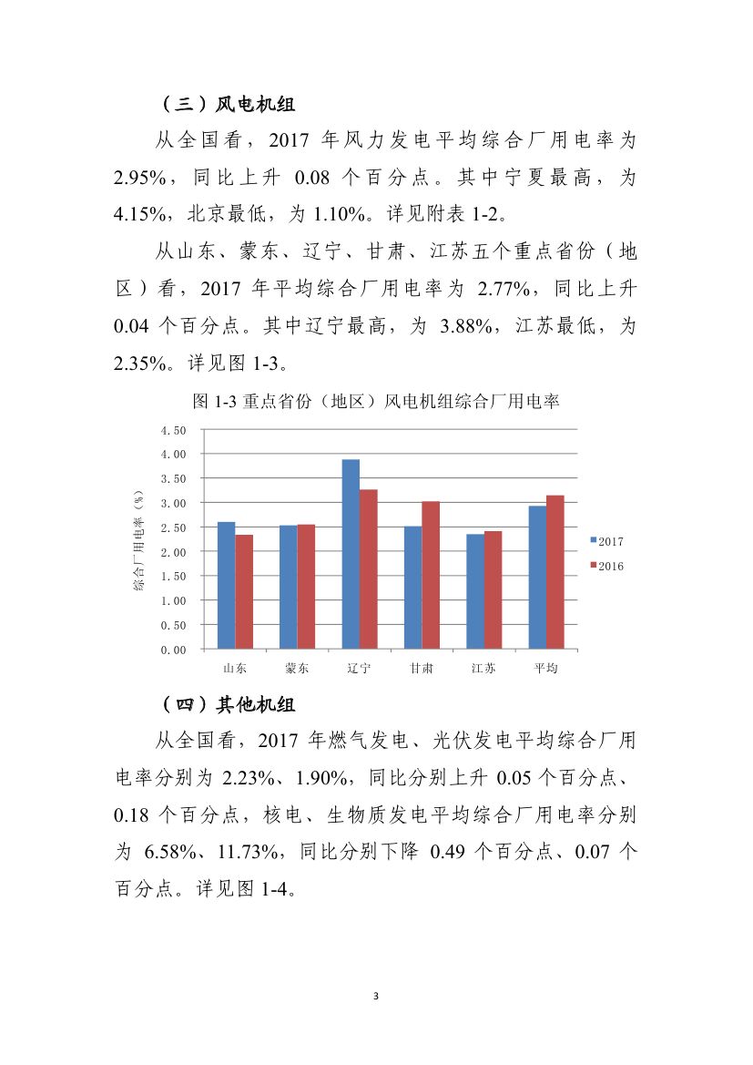2017 年,全國發(fā)電企業(yè)平均綜合廠用電率為 5.52%, 同比上升 0.08 個百分點。其中,生物質(zhì)發(fā)電最高,為 11.73%,水力發(fā)電最低,為 1.00%。
