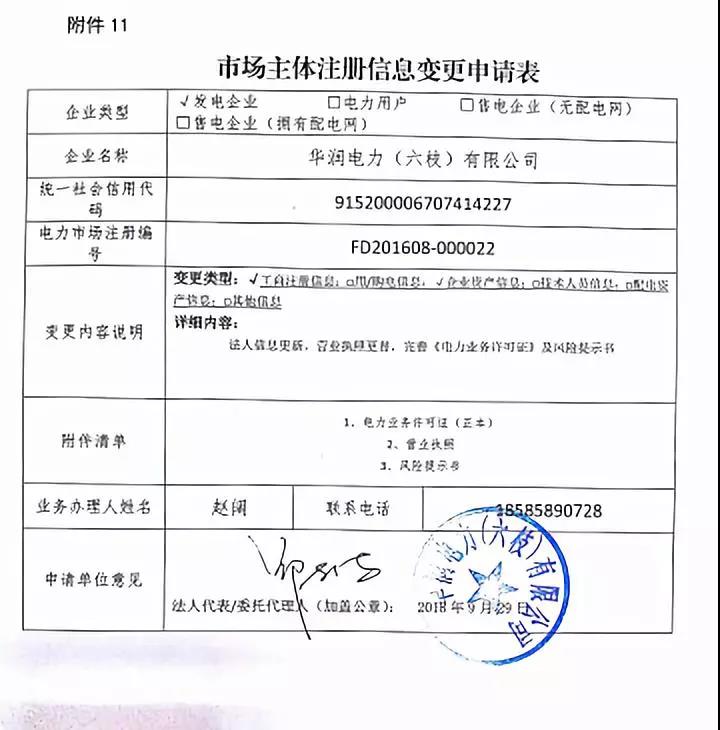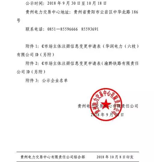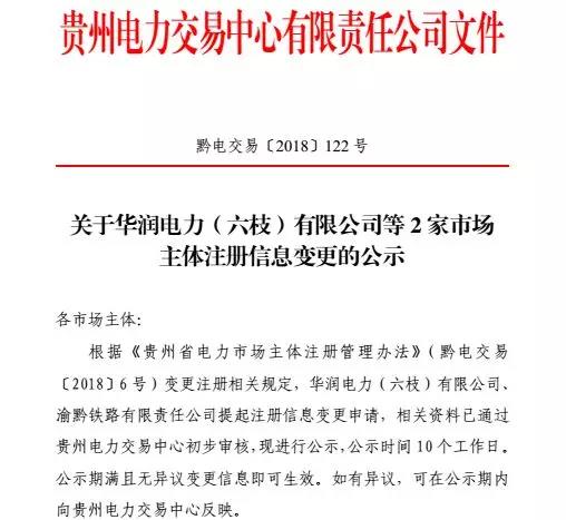 貴州關(guān)于華潤電力(六枝)有限公司等2家市場主體注冊(cè)信息變更的公示