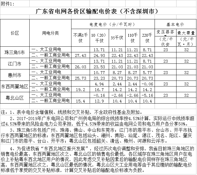 附件:1.廣東省電網(wǎng)各價(jià)區(qū)輸配電價(jià)表(不含深圳市)