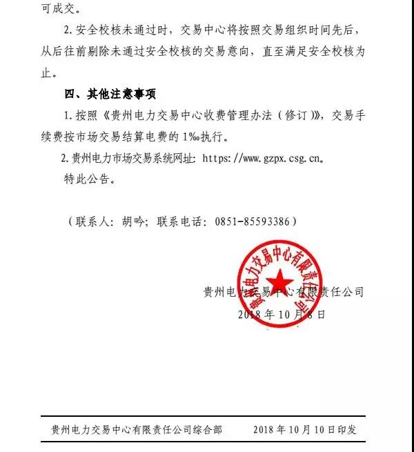 貴州關于2018 年10月開展市場化交易時間安排的通知