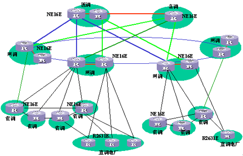 國家電力調(diào)度網(wǎng)絡(luò)根據(jù)N-1原則進(jìn)行線路及拓?fù)湓O(shè)計(jì),在核心層和骨干層采用星環(huán)結(jié)構(gòu)、接入層采用雙歸接入,充分保證網(wǎng)絡(luò)冗余可靠性;全網(wǎng)采用超過30臺Quidway? NetEngine 16E系列電信級、高可靠的骨干路由器,保證骨干網(wǎng)絡(luò)的穩(wěn)定可靠。并采用標(biāo)準(zhǔn)的OSPF路由協(xié)議,自動計(jì)算、更新網(wǎng)絡(luò)路由,保證網(wǎng)絡(luò)的可達(dá)性。