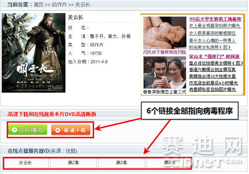 假電影網(wǎng)站利用電影關(guān)云長進(jìn)行病毒傳播