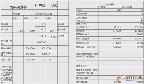 第三個優(yōu)勢是節(jié)省成本,促進節(jié)能減排。如果我們有500個用戶,像政府一邊都是雙網(wǎng)隔離的,買PC機要買一千臺,按4000算的話,總資產(chǎn)投入這邊是800萬。如果是用瘦客戶機的話,整的投入可能是600萬。在電力消耗前面說過,普通的PC可能是至少200瓦以上,瘦客戶端,我們就算16瓦的話,最后算下來,我們第五年的話,PC的耗電是844,用虛擬環(huán)境的話才是108。再一個,我們的維護成本,如果說是PC環(huán)境的話是800,在虛擬環(huán)境的話就是200,相差四倍的差距。最后算下來,我們可以看一下,這個數(shù)在第一年的時候,因為我們要購買新的設(shè)備,它的設(shè)備是要比PC環(huán)境下支出是要多的。隨著年份的增長我們會發(fā)現(xiàn),收益是越來越大的。