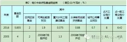 4.電價附加數(shù)量多比重大。目前,電價內(nèi)各類政府性基金每千瓦時5.855分,其中農(nóng)網(wǎng)還貸基金2分,可再生能源附加1.9分,重大水利工程建設(shè)基金0.375分,水庫移民后期扶持基金0.88分,城市公用事業(yè)附加0.7分。這些基金在大工業(yè)平均到戶電價中占8%,在一般工商業(yè)平均到戶電價中占6.42%?;鹂傤~比2005年每千瓦時多1.855分,基金在一般工商業(yè)電價中占比多2.29個百分點。