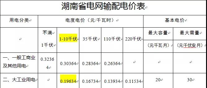 很多用戶反饋,參與市場(chǎng)化交易后看不懂電費(fèi)明細(xì)單,不能清楚看出是否節(jié)省到電費(fèi),看下表,我們以1-10千伏的大工業(yè)為例,湖南省電網(wǎng)大工業(yè)用電銷售電價(jià)是0.6437元/千瓦時(shí),湖南省電網(wǎng)大工業(yè)輸配電價(jià)是0.19634元/千瓦時(shí):