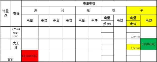 算法:總電量100000 *購(gòu)電基準(zhǔn)價(jià) 0.39886=39886元