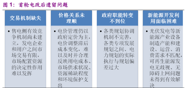 1 電改2 0,進行正當時  1 1、新一輪電改,直指交易市場化  2002年啟動的第一輪電力體制改革在前期政企分離的基礎(chǔ)上,進一步實現(xiàn)了廠網(wǎng)分離,并初步實現(xiàn)了主輔分離,破除了獨家辦電的體制束縛,從根本上改變