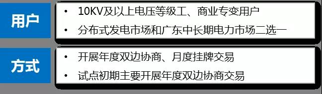 通過分析2018年3月廣東省發(fā)布《分布式發(fā)電市場(chǎng)化交易試點(diǎn)規(guī)則大綱(征求意見稿)》,我們可以看出:分布式發(fā)電交易從形式上更類似于之前的大用戶直供電模式。