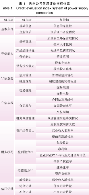 1.1 售電公司信用評(píng)價(jià)指標(biāo)體系