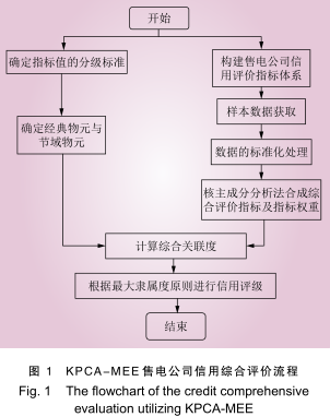K P C A - M E E 模 型 利 用 核 主 成 分 分 析 法(KPCA)對(duì)指標(biāo)進(jìn)行降維,并應(yīng)用 MEE 模型分析售電公司信用水平。應(yīng)用該模型評(píng)價(jià)售電公司信用的流程如圖 1 所示。