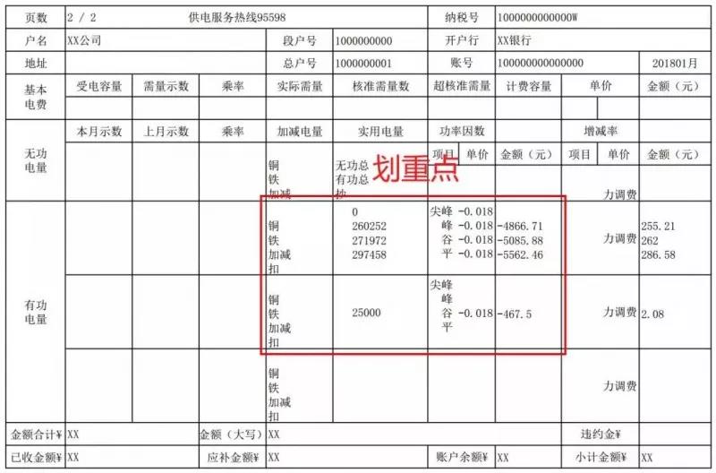 大家可能注意到,在紅框第二行,扣了25000千瓦時(shí),這個(gè)電量,就是大家的非生產(chǎn)用電量了,它和峰平谷電量相加,就是當(dāng)月的總用電量。但是非生產(chǎn)用電的價(jià)格和峰平谷價(jià)格不一樣,因此單獨(dú)列出。