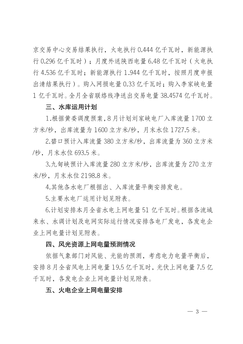 3.2018年8月甘肅新能源企業(yè)計(jì)劃上網(wǎng)電量