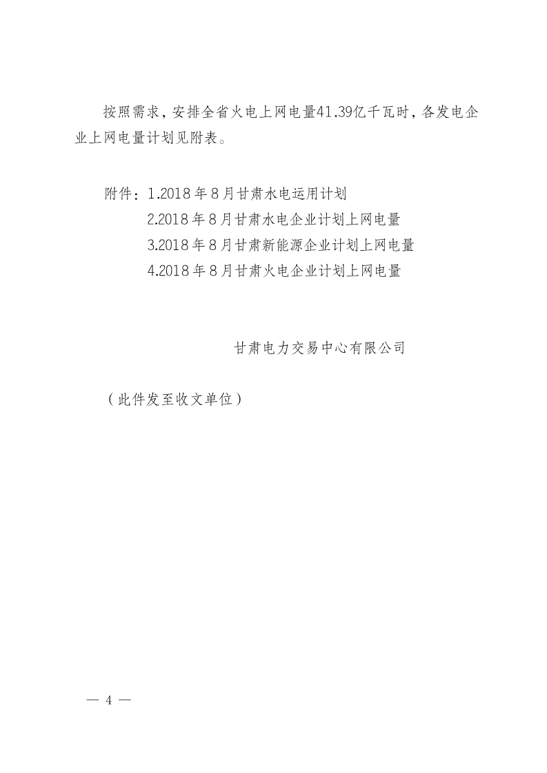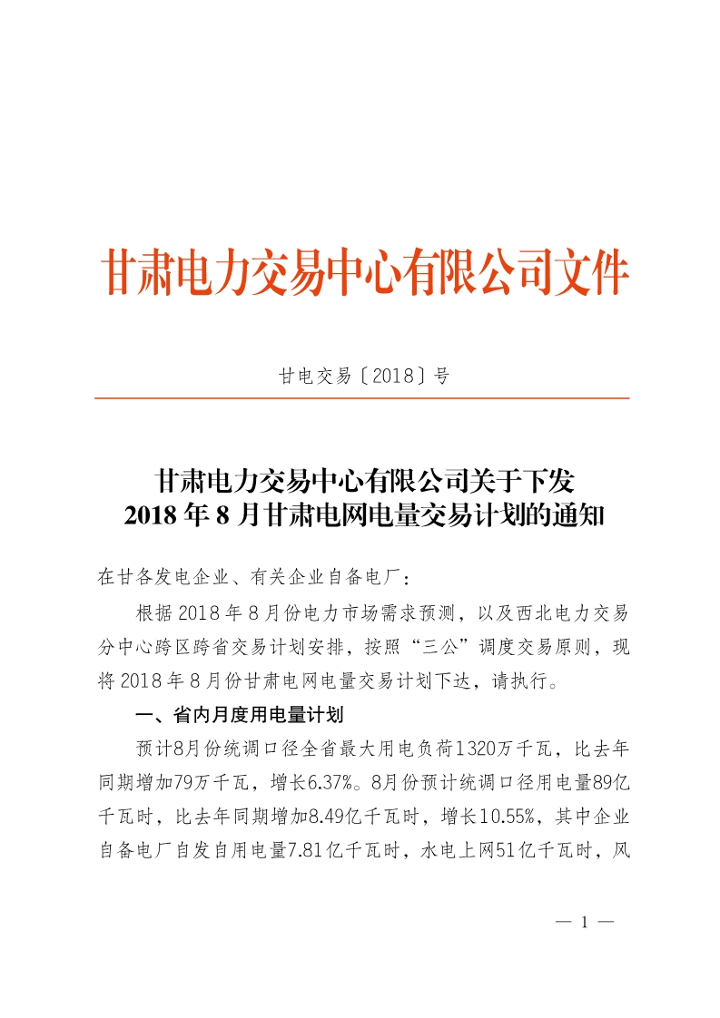 2018年8月甘肅電網(wǎng)電量交易計(jì)劃