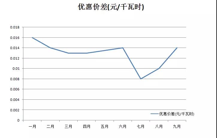 從2018年1月,到小編撰稿時(shí)間(9月),長(zhǎng)協(xié)電量的優(yōu)惠幅度是要比月競(jìng)電量大的。月競(jìng)電量的價(jià)格,小編已經(jīng)整理如下(購(gòu)電價(jià)差=省燃煤機(jī)組標(biāo)桿電價(jià)0.391元/千瓦時(shí)-出清價(jià)格):