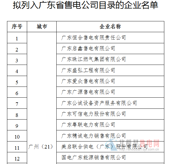第六批46家!廣東擬列入售電公司目錄企業(yè)公示(附前五批)