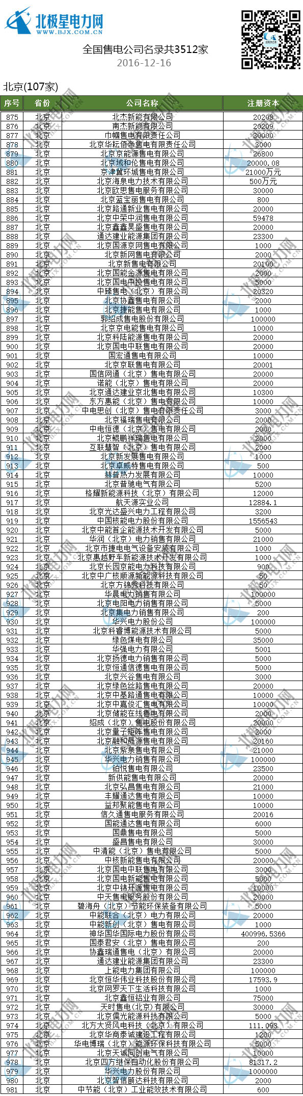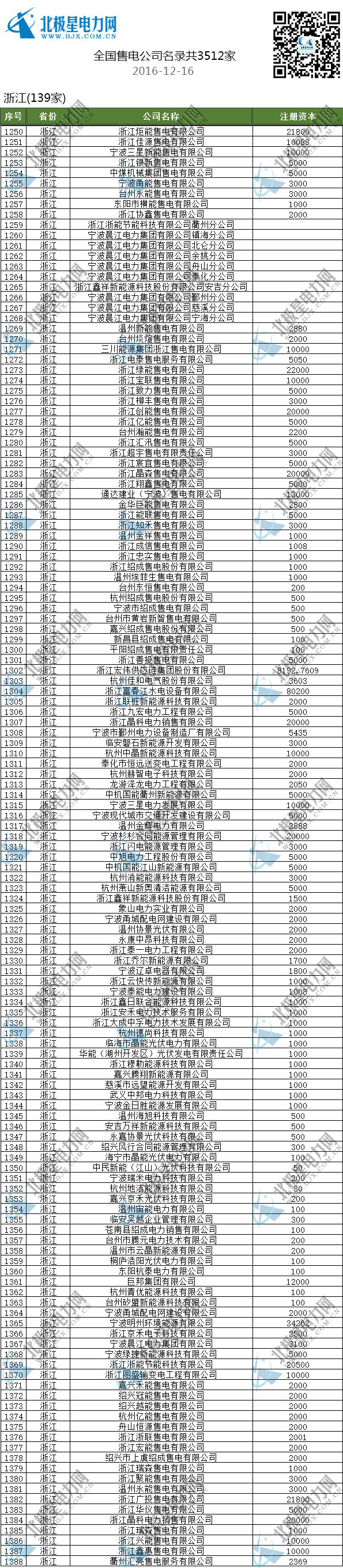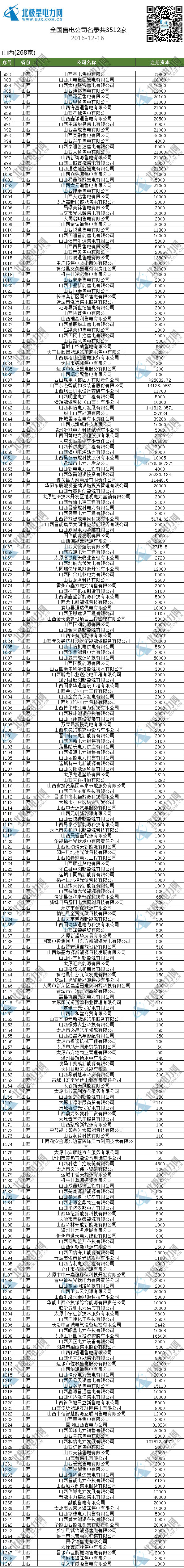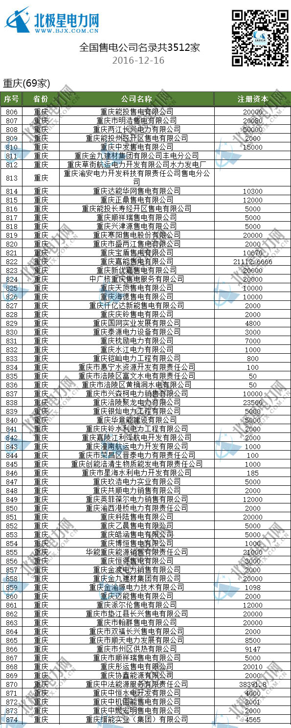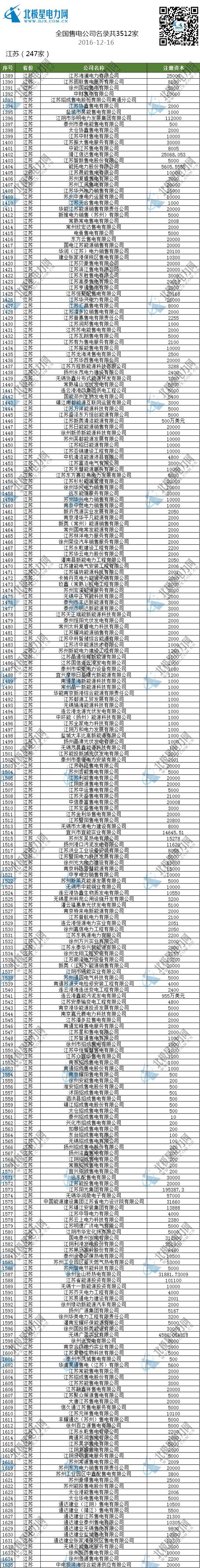 售電公司名單/全國已成立3512家售電公司(截止2016-12-16)