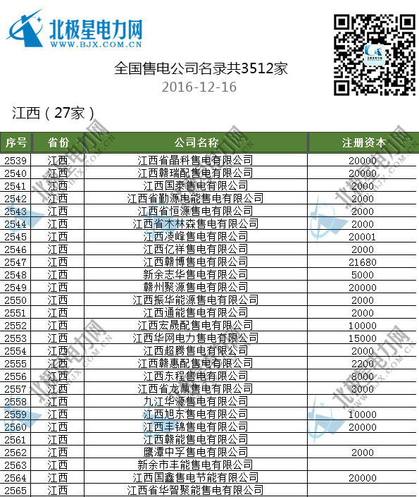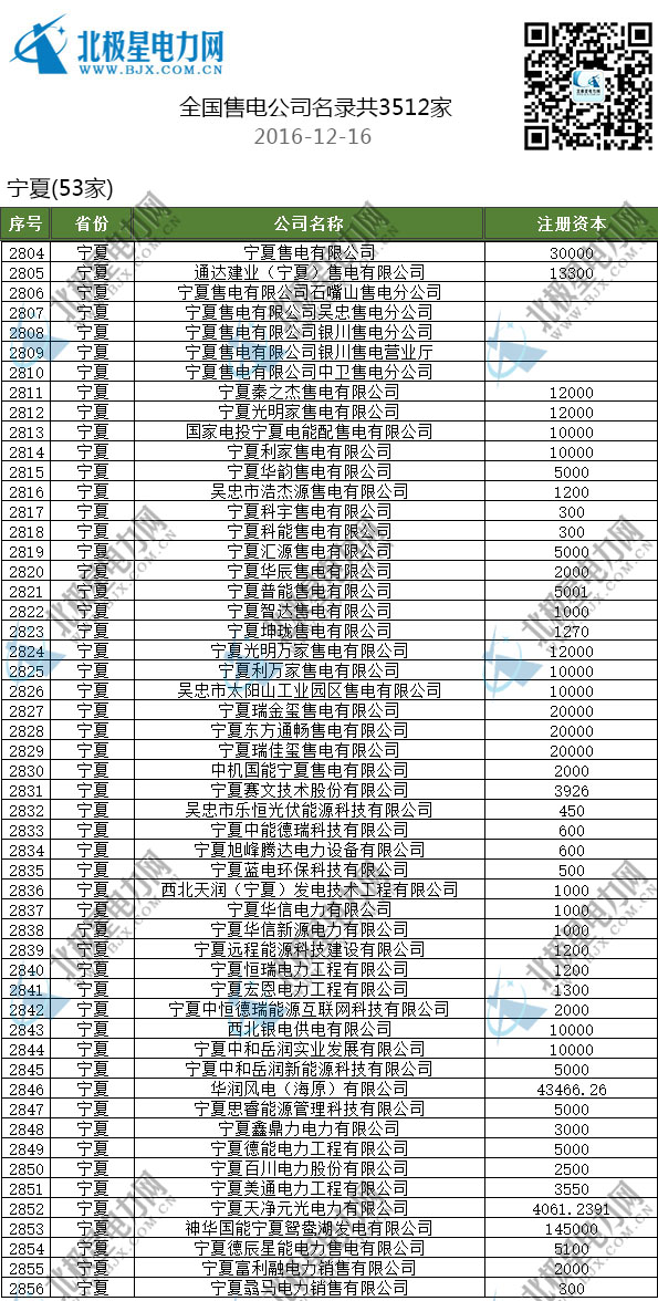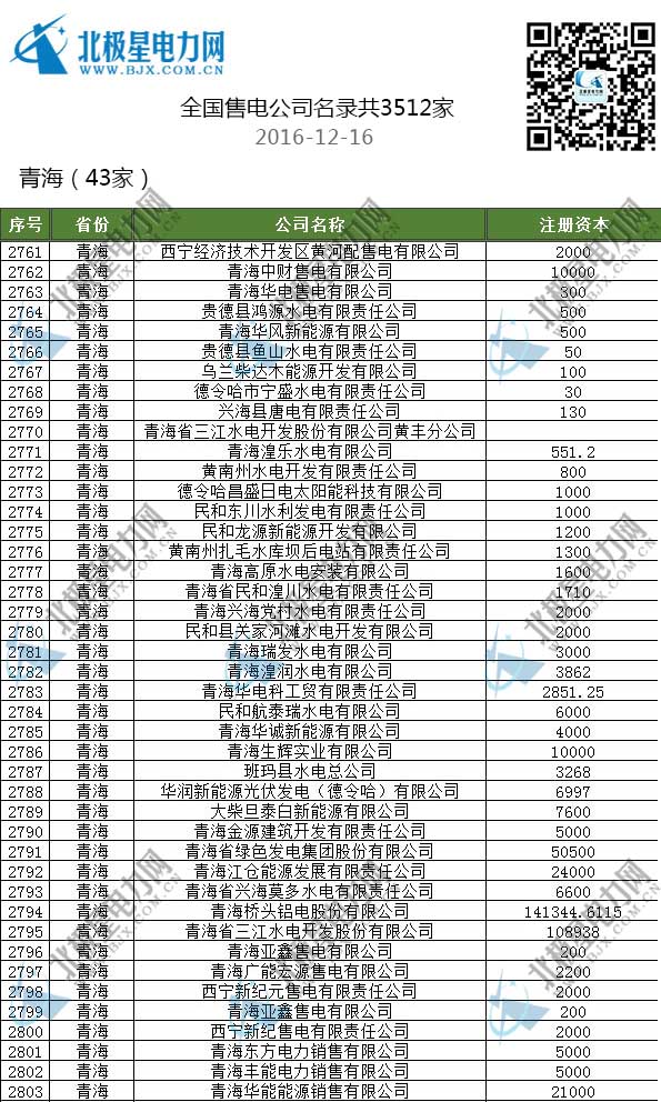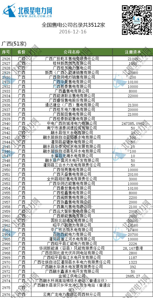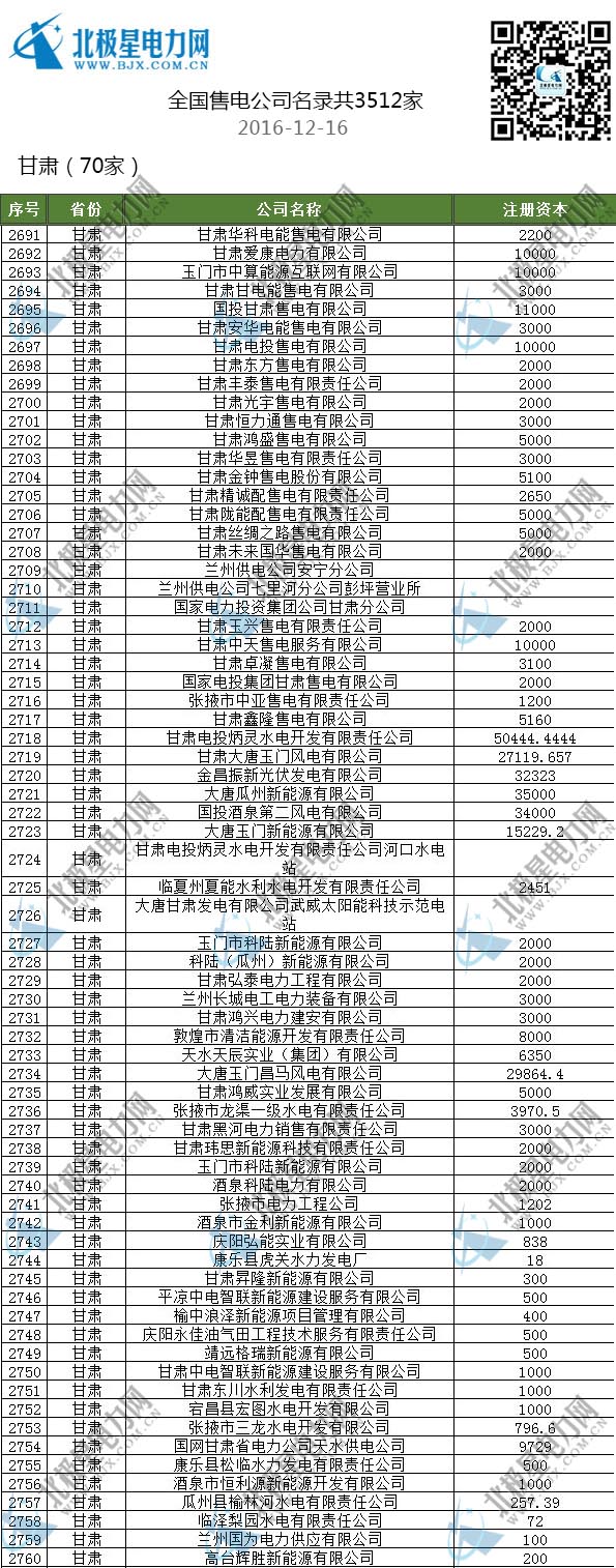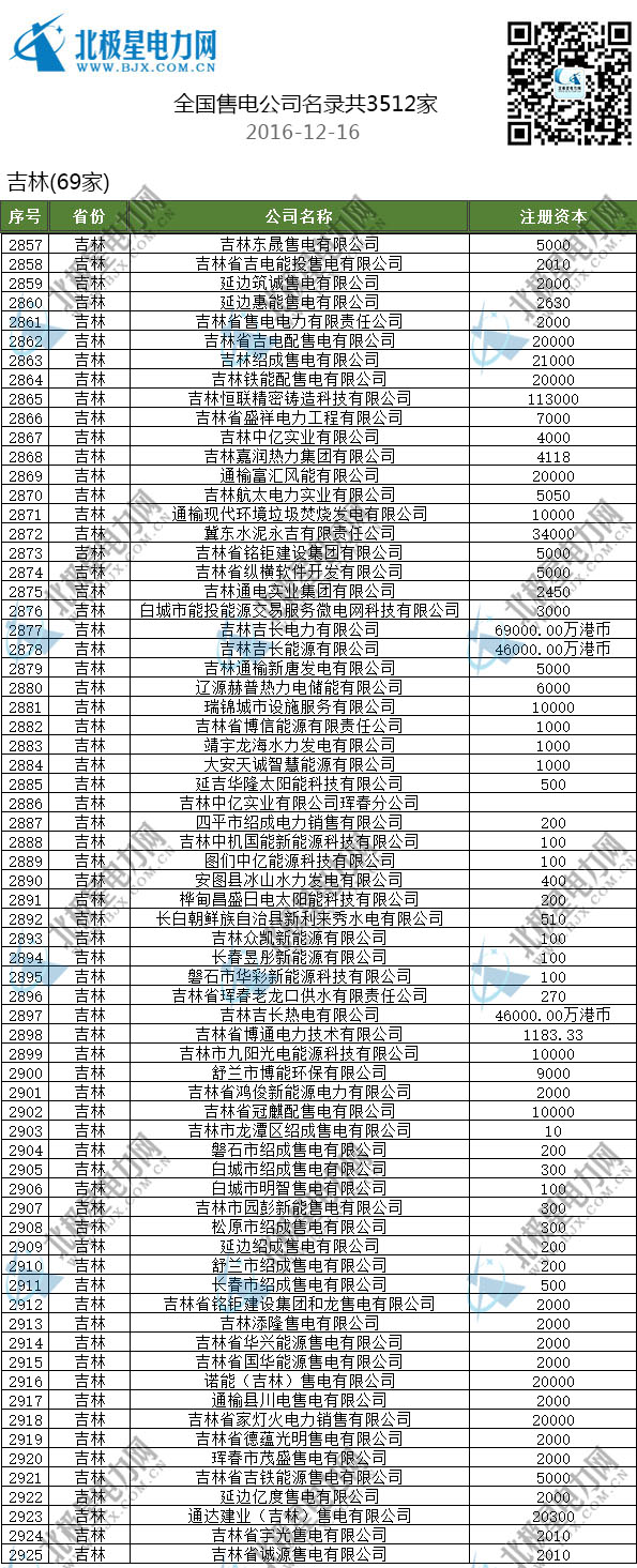 售電公司名單/全國已成立3512家售電公司(截止2016-12-16)