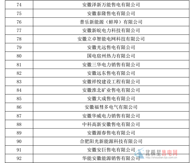 安徽公示首批100家準入售電公司名單