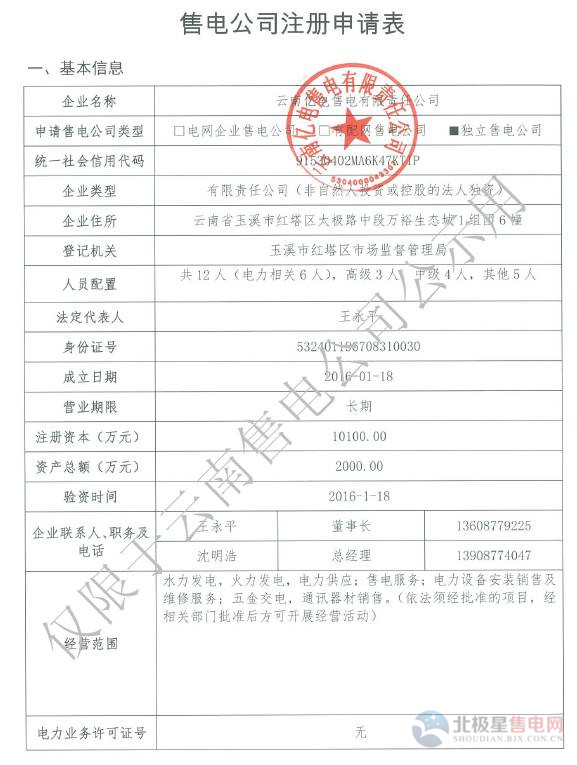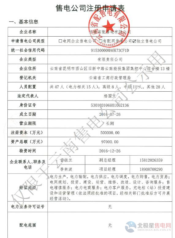 按照國(guó)家發(fā)展改革委、國(guó)家能源局《售電公司準(zhǔn)入與退出管理辦法》(發(fā)改經(jīng)體〔2016〕2120號(hào))、《云南省售電側(cè)改革實(shí)施方案》(云電改辦〔2017〕1號(hào))的要求,昆明電力交易中心受理了下列售電公司的注冊(cè)申請(qǐng),對(duì)售