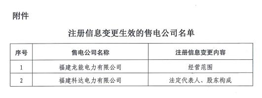 福建2家售電公司注冊(cè)信息變更