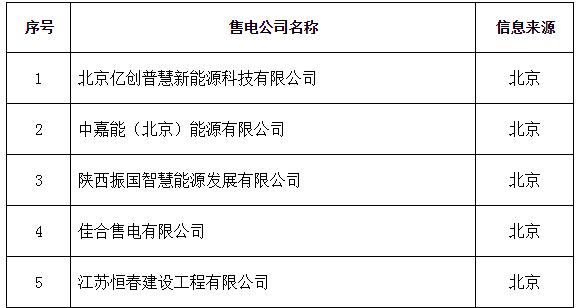 新疆公示10家售電公司其中5家為北京推送 另有1家申請資產變更