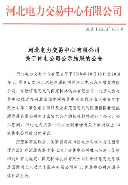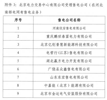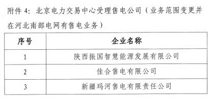 河北新增10家售電公司(北京推送9家) 另有業(yè)務(wù)范圍、注冊(cè)信息變更的4家售電公司手續(xù)生效
