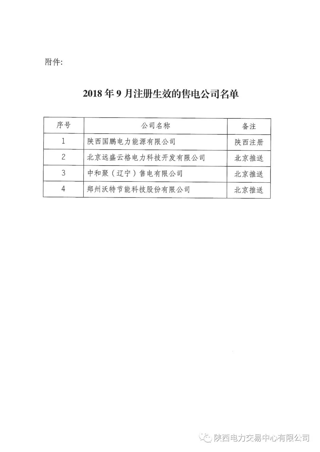 陜西電力交易中心有限公司關(guān)于陜西省2018年9月受理注冊的售電公司公示結(jié)果的公告