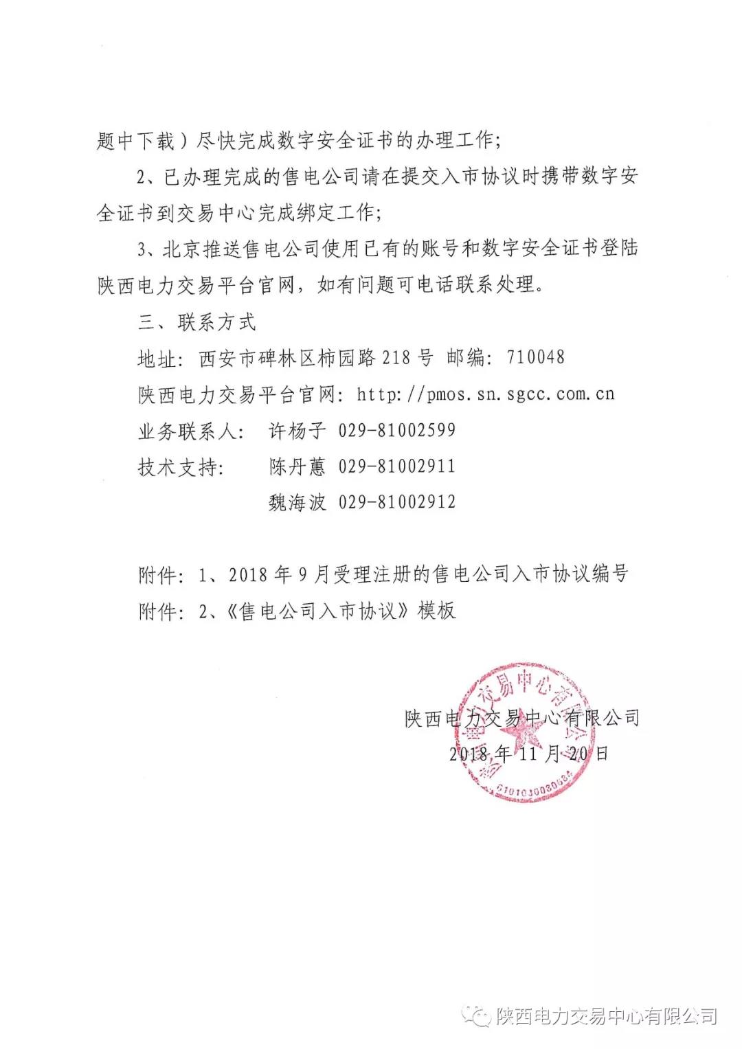 陜西電力交易中心有限公司關(guān)于開展2018年9月注冊售電公司入市協(xié)議簽訂及數(shù)字安全證書辦理綁定工作的通知
