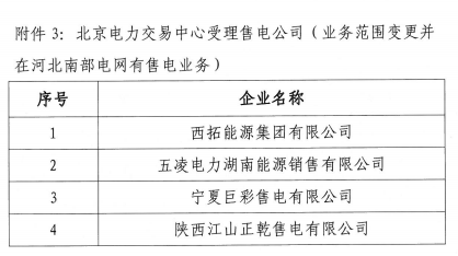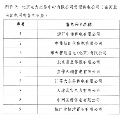 河北新增北京推送的9家售電公司 另有4家業(yè)務(wù)范圍、1家注冊(cè)信息變更生效