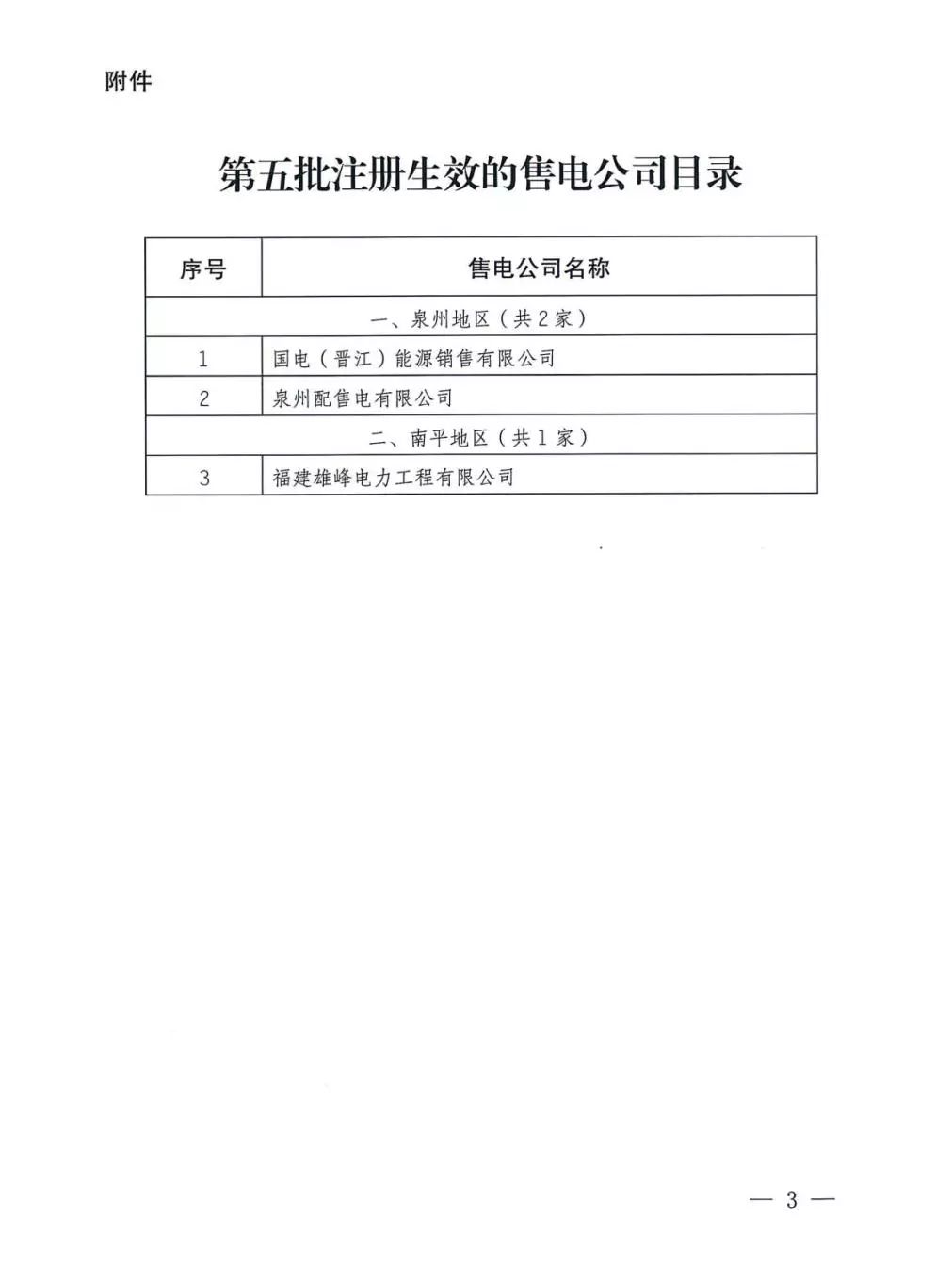 福建新增第五批3家售電公司