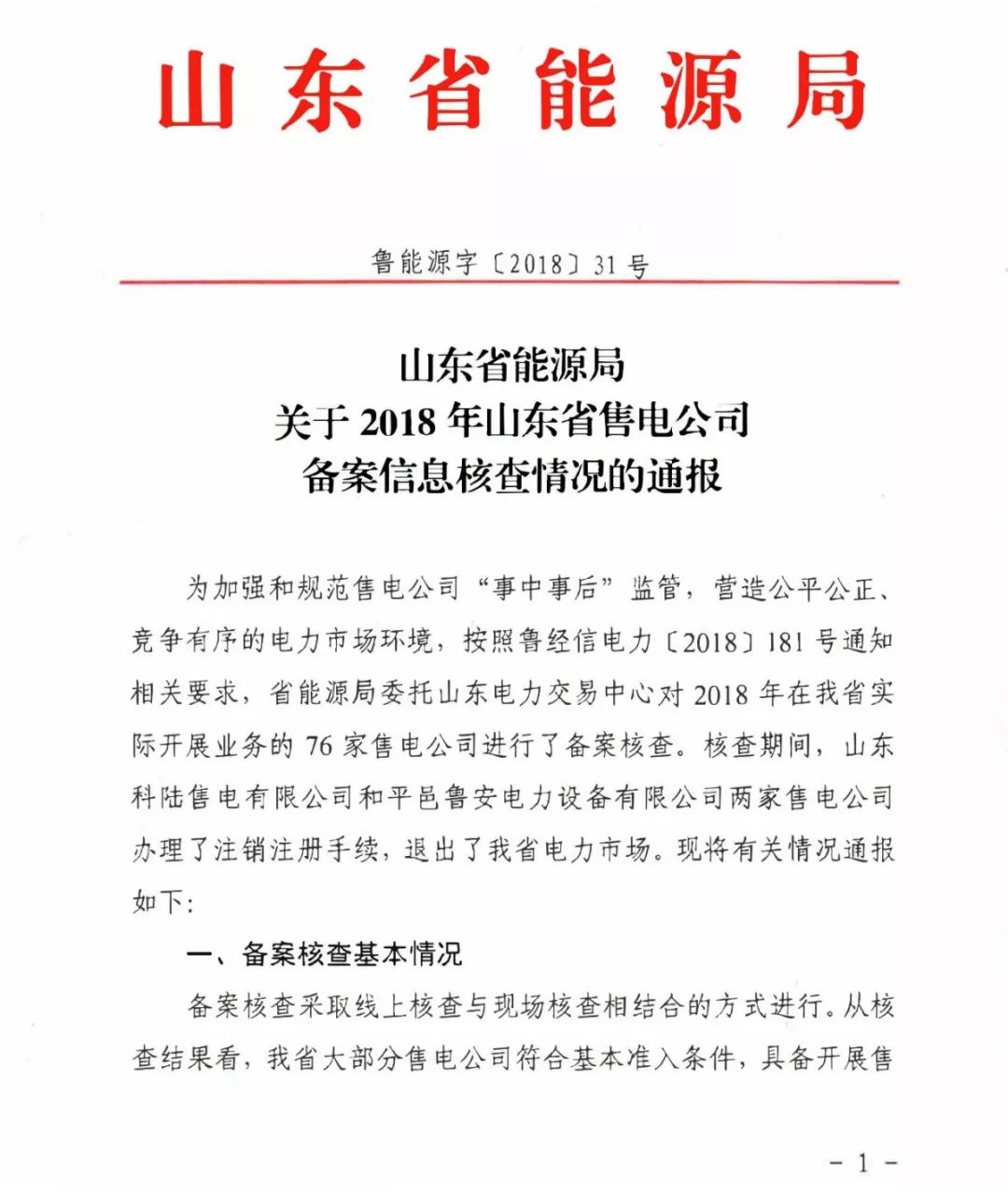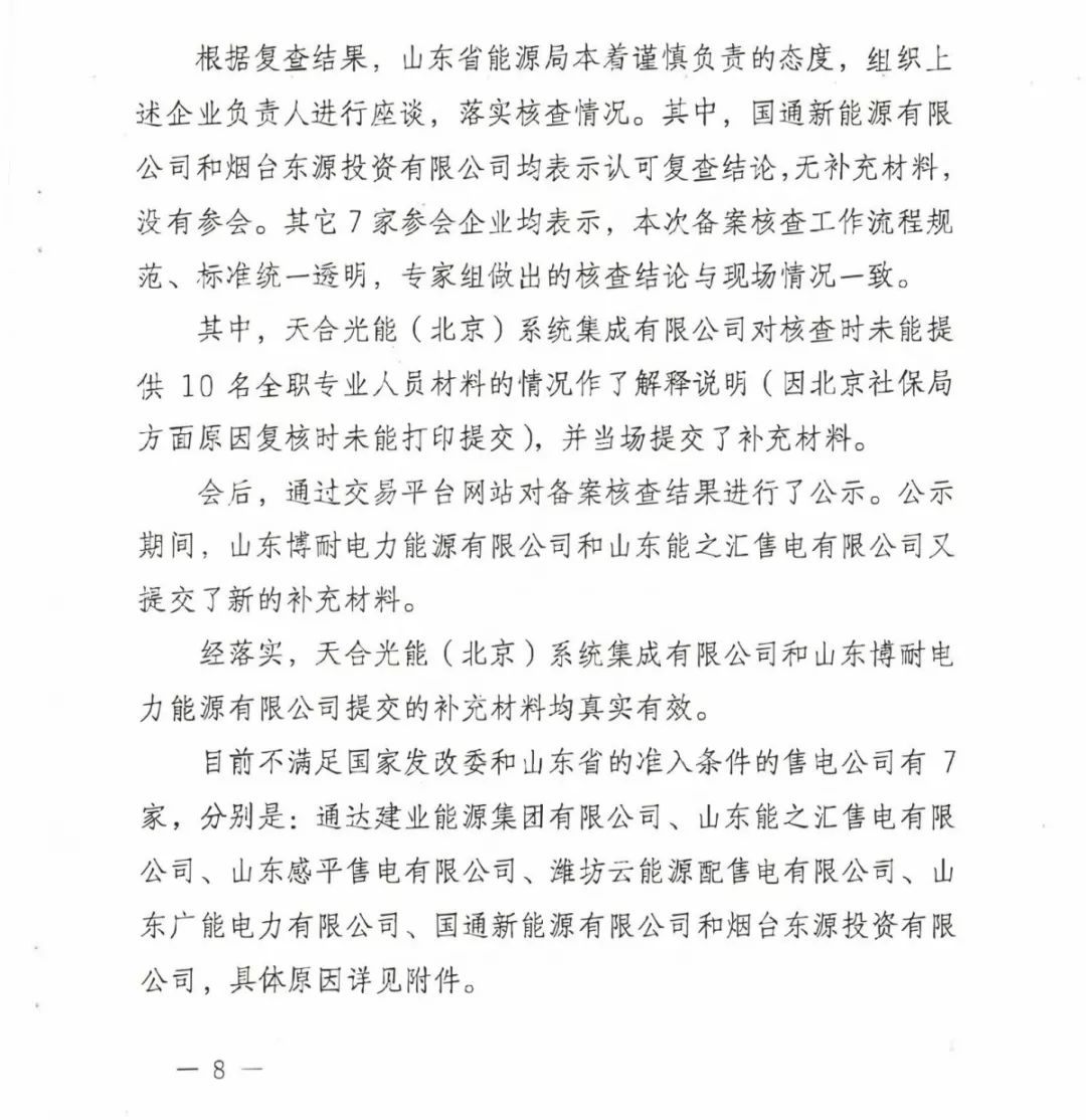 山東2018年售電公司備案信息核查情況:2家售電公司被強制退市