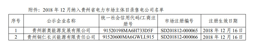 貴州12月新增2家售電公司