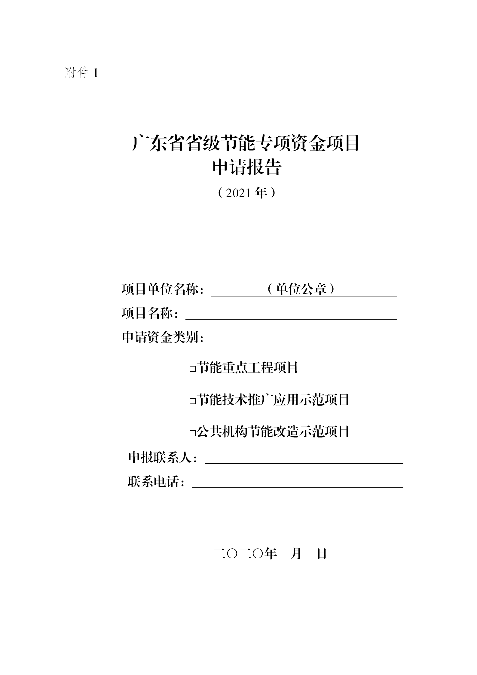 附件:1.省級節(jié)能專項資金項目申請報告封面