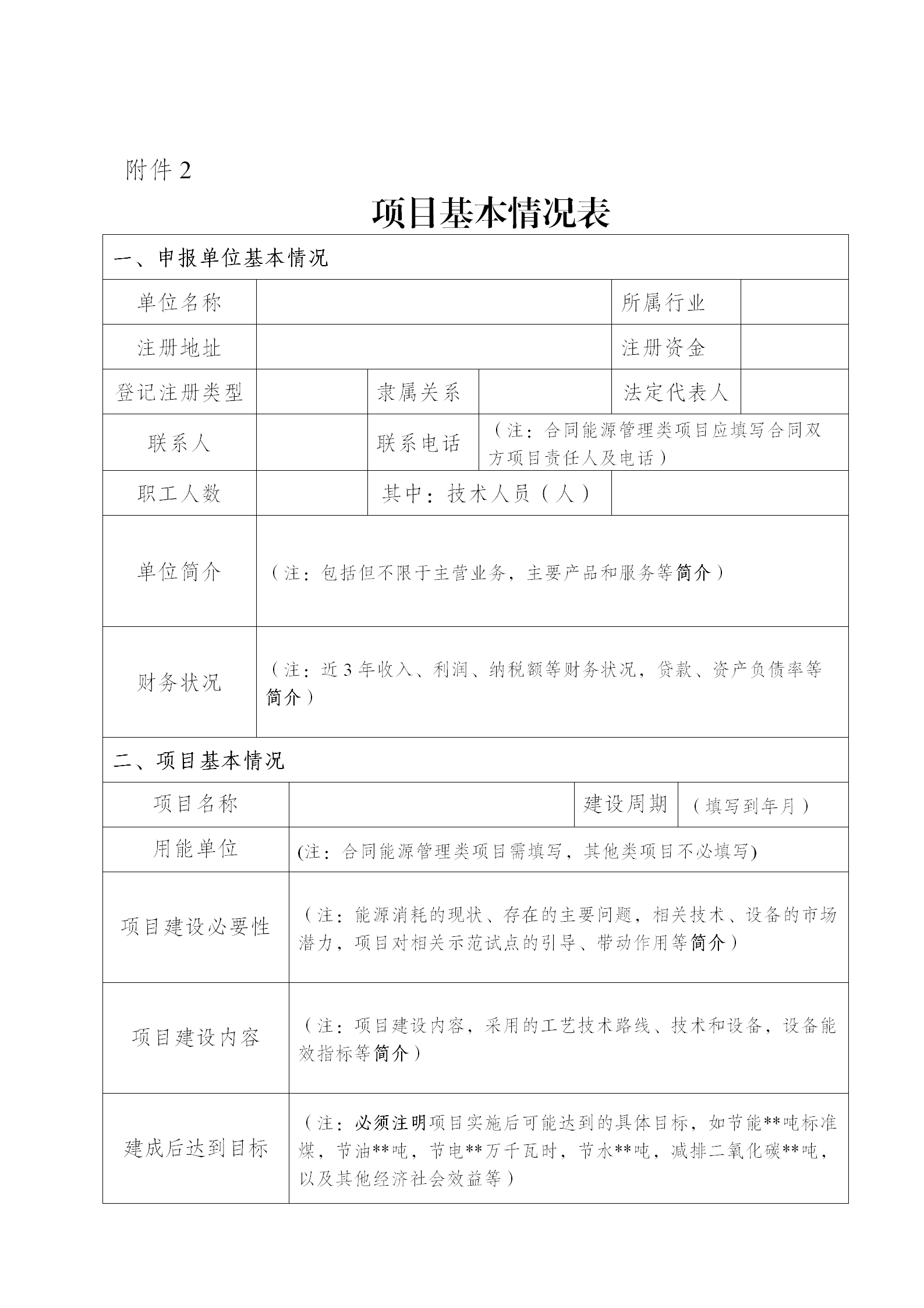 2.項目基本情況表
