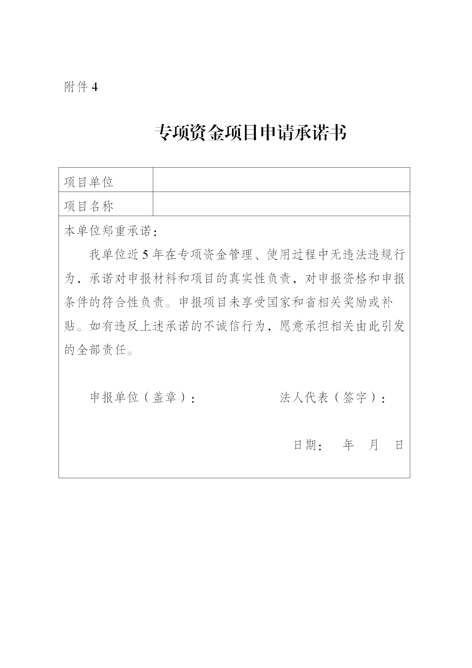4.專項資金項目申請承諾書