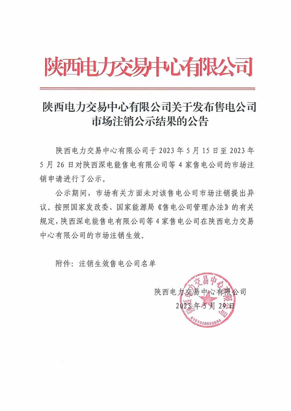 陜西電力交易中心:4家售電公司注銷(xiāo)生效
