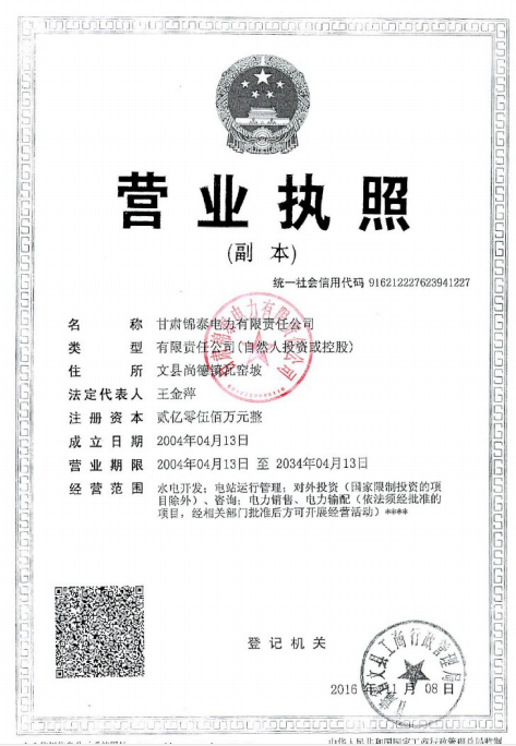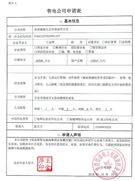 關(guān)于甘肅錦泰電力有限責任公司注冊成為電力自主交易市場主體相關(guān)信息的公示