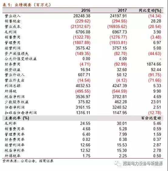 公司發(fā)布2017年年報(bào):報(bào)告期內(nèi)實(shí)現(xiàn)收入241.98億元,同比下降14.34%;歸上凈利潤32.41億元,同比增長2.51%;扣非凈利潤11.48億元,同比下降12.78%。公司整體經(jīng)營穩(wěn)健,業(yè)績基本符合預(yù)期,盈利及現(xiàn)金流持續(xù)優(yōu)化。2017年底公司完成了資產(chǎn)收購,電網(wǎng)自動(dòng)化、繼保及柔直是公司收入及業(yè)績的重要支撐,受租賃業(yè)務(wù)回購進(jìn)度影響,電網(wǎng)自動(dòng)化業(yè)務(wù)有一定波動(dòng),繼保及柔直快速發(fā)展。公司仍將持續(xù)優(yōu)化業(yè)務(wù),提升效率,推進(jìn)新產(chǎn)品新產(chǎn)業(yè)的發(fā)展,18年有望實(shí)現(xiàn)較快的發(fā)展,維持強(qiáng)烈推薦評級,目標(biāo)價(jià)21-23元(市值963-1054億元)。