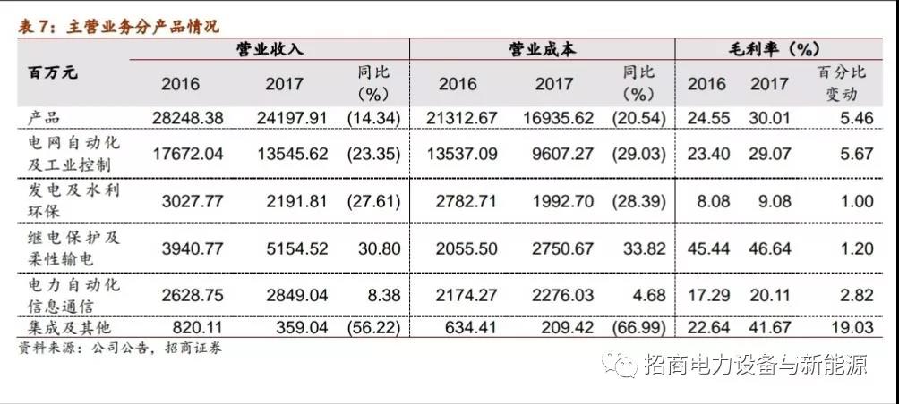 發(fā)電及水利業(yè)務(wù)因市場競爭加劇,收入下降27.61%;集成及其他業(yè)務(wù)中,公司適度控制了盈利能力較弱的新能源集成總包業(yè)務(wù)量(主要是南瑞太陽能業(yè)務(wù)),使收入下降,毛利率上升;電力自動(dòng)化信息通信業(yè)務(wù)全面向好,營收增長8.38%,毛利率增長2.82個(gè)百分點(diǎn),至20%。