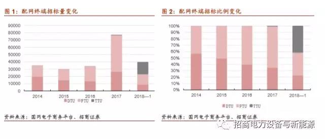 配網(wǎng)自動(dòng)化領(lǐng)域,17、18年招投標(biāo)規(guī)模再突破。17年配網(wǎng)設(shè)備招標(biāo)量成倍增長,2017年是配電大年,配電終端設(shè)備招標(biāo)量是2016年的兩倍多,主站招標(biāo)量亦創(chuàng)新高,數(shù)量將近14-16年主站招標(biāo)量之和。而18年第一批配網(wǎng)協(xié)議招標(biāo)中,除數(shù)量上的增加外,還拓寬了招標(biāo)設(shè)備,TTU設(shè)備開始大額招標(biāo)。