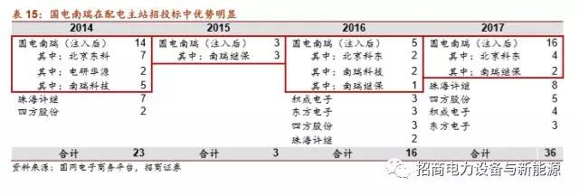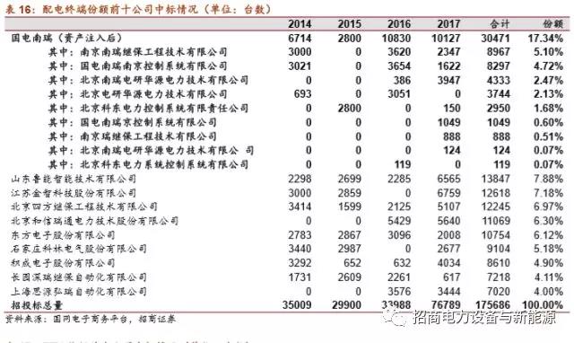 公司在配網(wǎng)領(lǐng)域具有全方位優(yōu)勢。公司在配網(wǎng)自動(dòng)化領(lǐng)域中各個(gè)設(shè)備均有明顯優(yōu)勢。對于技術(shù)壁壘較高的配電主站,公司占據(jù)絕對優(yōu)勢,在14-17年配電主站中標(biāo)38臺,占14-17年主站招標(biāo)總數(shù)的48.7%,基本處于絕對領(lǐng)先地位;在配電終端設(shè)備招投標(biāo)中,公司亦占據(jù)17.34%的份額,且FTU優(yōu)勢更大,占將近20%市場份額,優(yōu)勢明顯。