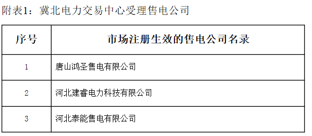 冀北新增25家售電公司