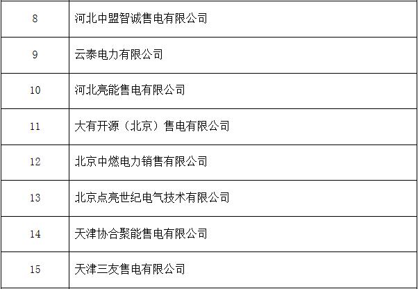 冀北新增31家售電公司