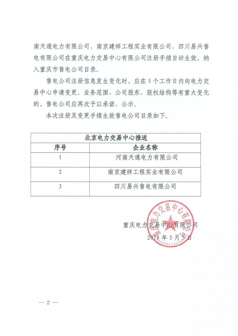 重慶新公示第五批4家售電公司 新增第四批3家售電公司
