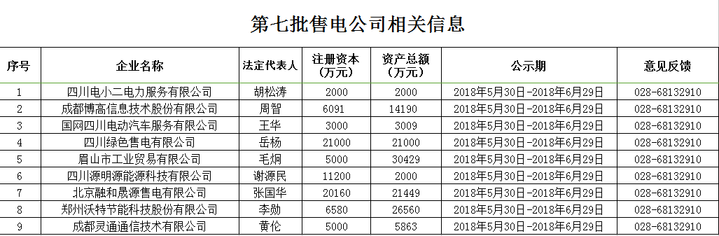 四川電力交易中心日前發(fā)布了《第七批售電公司相關(guān)信息》,對(duì)9家售電公司進(jìn)行了公示,公示期為2018年5月30日-2018年6月29日。
