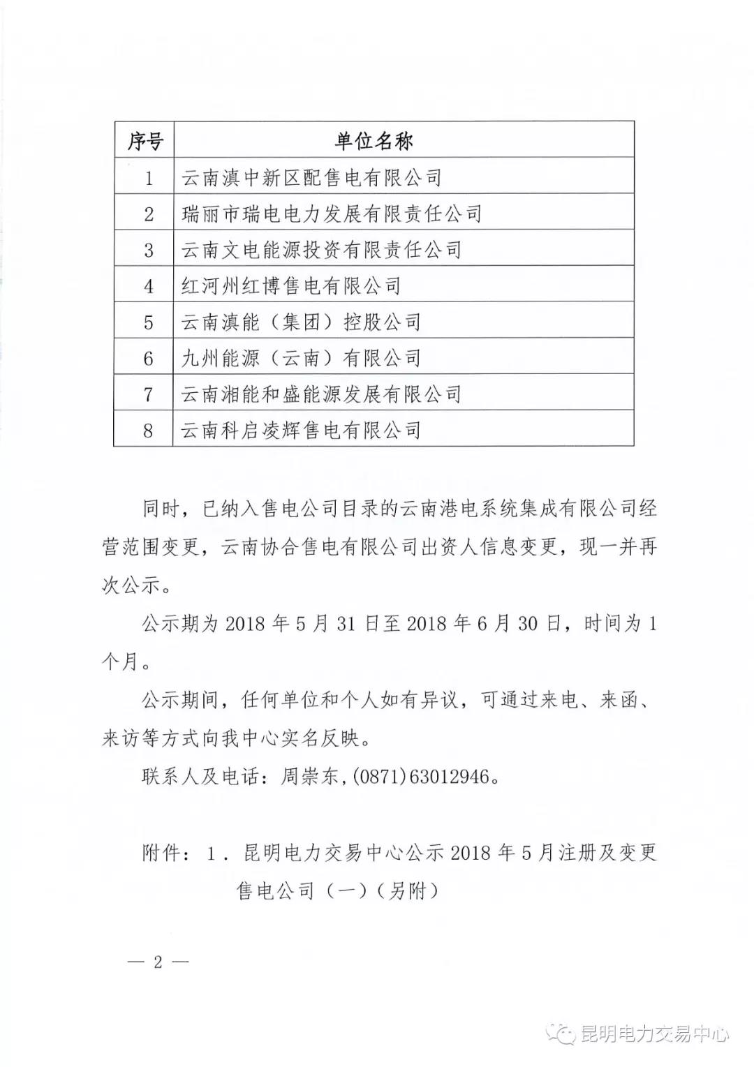 昆明電力交易中心關(guān)于公示2018年5月注冊(cè)售電公司的公告