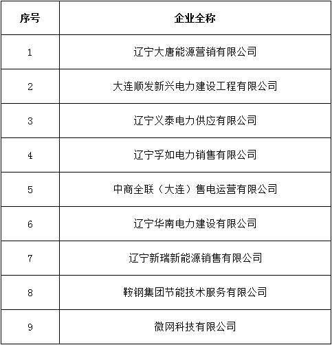 公示期間,任何單位和個人如有異議,可以實名通過來電、來信、來訪等方式向遼寧電力交易中心反映。本次公示售電公司目錄如下: